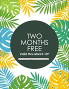 Have a lease start date by March 13th and receive a move in credit of two months rent. Please call our office for more information.