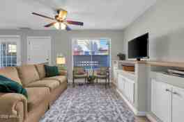 Conveniently located in the Saguaro Woods community, close to restaurants, shopping, freeways, parks, and the famous fountain. This home features 2 beds, 1.5 baths, and 967 sqft of living space. Boasting 2 stories and a carport, this charming home also offers a built-in entertainment center and a huge patio on which to entertain your guests. The kitchen is sure to impress with its Travertine countertops, white cabinets, and breakfast bar. WIFI is included! The property is fully furnished!