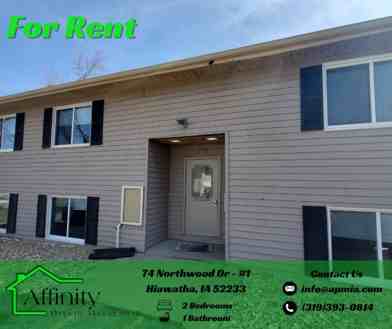 Two-bedroom, one-bath apartment located in Hiawatha, situated on the first floor of a secure building. This unit features boiler heat, wall air conditioning, and convenient off-street parking. The living room and kitchen offer durable LVP flooring, while the full kitchen includes stainless steel appliances, including a refrigerator, dishwasher, range oven, and microwave, along with ample cabinet and cupboard space. Both bedrooms feature carpet, full closets, and comfortably accommodate queen-size beds. The bathroom includes a full tub. Coin-operated washer and dryer are located in the lower level, conveniently just outside the unit’s entry door.