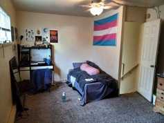 Apartment #2 is the first unit behind the original house. This two-story spacious apartment used to be two units, but was opened up into one, so there are two living rooms. One of the lower bedrooms has its own private entrance too. There is a fenced patio/dog run off the back of the unit, with a picnic table. Off-street parking in back is shared between #2, 3, and 4. Unit #1 uses the driveway. There is a communal laundry room with coin-operated machines on the property that all the units share.