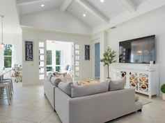 Offered partially furnished. Furniture on front porch and queen bed not included. Twin bed included in place of queen bed. Linens on beds not included. All wall hangings included. Lamps in two guest bedrooms not included. Accessories not included.