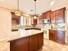 3,064 Sq Ft! 4 bedroom, 2.5 bath home in Mountain Gate! Thoughtful two-story floor plan with gated front courtyard, soaring cathedral ceilings, & welcoming great room entry. Stunning eat-in kitchen with included appliances, & large center island/breakfast bar! Off kitchen + formal dining space. Kitchen opens to spacious family room with built-in media niche, & french door patio access! Neutral interior with tile flooring in all the right places. Flexible upstairs loft provides ample additional living space! This home offers 4 generously sized bedrooms. Upstairs primary suite with full bath + walk-in closet! Laundry room with included washer/dryer. Impressive backyard offers a covered patio, built-in Bbq + fire pit, artificial turf, & private swimming pool! **Pool Services Included!** 3 car garage. Mountain Gate is a desirable Surprise community offering gated entry, playgrounds, & biking/walking trails! Great Surprise location with easy Loop-303 + Us-60 access.