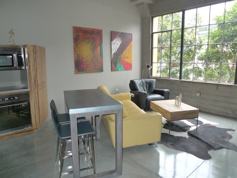 Short term rental available September 1:furnished loft-condo with 12' ceilings and polished concrete, radiant-heat floors in historic building with concierge. Immense original steel window gives views to financial district high-rises. This loft was just remodeled this summer with a uniquely modern, custom kitchen and bath, new appliances and new furniture. Filled with modern art by local Bay Area artists. The angled wall to the left of the bathroom sink is a blackboard wall for writing thoughts and ideas you want to ponder. A shared roof deck has views of the bay bridge light show. Rent includes weekly housekeeping, wireless internet and all utilities. Three blocks to the waterfront and three blocks to BART and Market Street.