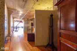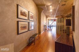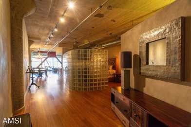 Furnished Loft in SOMA, One Block from the Ball Park! AMSI/Maureen Couture & Adam Long - Fully furnished gorgeous loft in the historic Seagrams Distillery. Spacious open plan with dramatic double-height floor-to-ceiling windows, mushroom-capped columns, and concrete features throughout. The recently updated kitchen features terrazzo countertops, stainless appliances, and a wine cooler. A unique glass block divider provides both privacy and light in the bedroom. A luxurious walk-in closet with built-in storage and a newly refreshed bathroom finish this level. Additional features include hardwood floors, in-unit laundry, one-car garage parking, and air conditioning! Parking Spot #14 with a small storage rack.