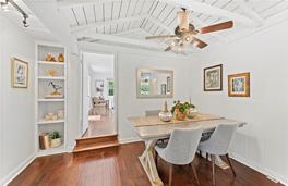 Located on a tranquil street in Laguna Canyon, this beautiful light and bright home has been lovingly updated yet still retains the quintessential classic cottage charm. With hardwood floors throughout, high open beamed ceilings in some rooms and multiple doors with paned glass windows that let in abundant natural light and make indoor/outdoor living easy, this home feels larger than the actual square footage. The kitchen has been updated with butcher block and white tile countertops, a dishwasher and offers plenty of counter space. The spacious living room has a door that leads to the private patio and yard. Bathroom has also been updated and there is an indoor laundry room. Closet space is not an issue with a walk in closet plus 3 other closets. Fully fenced lot is very private and lush including 3 brick patios plus a large yard. The detached garage also features the high open beamed ceilings. Fantastic location that is just a short stroll to the beach, festivals, shops, art galleries & restaurants and offers quick access to travel corridors in all directions.