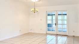 Imagine yourself in this three-bedroom, two-bathroom unit with a private yard on a quiet cul-de-sac in Casselberry. The open living and dining areas seamlessly extend to the screened-in patio and a private, fenced-in backyard through french doors. Adjacent to the dining space, the galley-style kitchen is equipped with an electric range, refrigerator, microwave, and dishwasher. A utility room located beyond the kitchen includes a washer and dryer. The primary bedroom features its own private full bathroom with a bathtub. Another large bedroom has direct access to the units second bathroom with a bathtub, which is also accessible from the hallway. The third, smaller bedroom is ideal for use as a childs bedroom, office, or yoga space. Neutral-colored ceramic tile flooring and fresh, snow-white painted walls, make it easy to coordinate with your furniture and accessories.Outside, the large tiled, screen-in patio is perfect for relaxing and dining.
