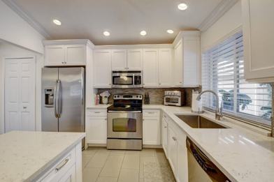 Welcome Home! Come see this beautiful 4 bedroom, 2 bath, 2 car garage open concept pool home for rent. With bamboo hardwood floors, high ceilings, crown molding, 6 inch baseboards, this home is a beauty all the way around. Nestled in a quaint neighborhood with excellent schools and conveniently located near shopping, restaurants, beach, etc, look no further! The kitchen has white shaker cabinets, cambria quartz countertops and stainless steel appliances. See the welcoming pool from every living space and the primary bedroom. Primary bedroom has high ceilings, large walk-in closet, double vanities and a spacious shower. Indoor laundry. Covered patio, large backyard and beautiful pool. Lawn and pool maintenance included!
