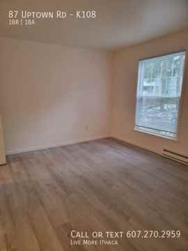 87 Uptown Rd #K108 is a 1 bedroom, 1 bathroom apartment for rent. It is located in Ithaca. It has apartment amenities including carpet, fitness center, on-site laundry, and in-unit laundry. Cats and dogs are allowed, making it a pet-friendly apartment.