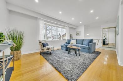 - Large living/dining space with pot lights