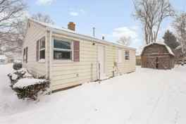 This recently remodeled 2-bedroom, 1-bath home features all-new flooring, windows, heating, and central air. The interior has been freshly painted and includes new appliances, including a refrigerator and stove.