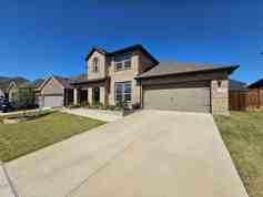 Welcome to this stunning 5-bedroom, 4-bathroom home located in the highly sought-after area of Forney, TX. This home boasts a spacious living room, perfect for entertaining, and a second living area upstairs for added comfort. The kitchen is a chef's dream with stainless steel appliances, a gas cooktop, a large granite island, a built-in wall oven and microwave, and a convenient pot filler located above the cooktop.