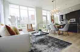 Each distinctly designed apartment features a new level of luxury. Wide plank flooring blankets the entire home, with a full size in-unit washer and dryer, handsomely designed chef’s quality kitchen with Bosch stainless steel appliances and floor-to-ceiling windows for the full effect of wonderful city views.