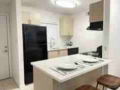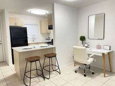 Welcome home to this beautifully renovated 1 Bed 1 Bath available for move in immediately! This apartment is perfect for your work from home life, do to the spacious open floor plan. The kitchen includes tons of cabinet space, a breakfast bar and updated cabinets! This apartment also has all hard surface flooring throughout, no carpet. You will love the finishes in this fully renovated apartment.