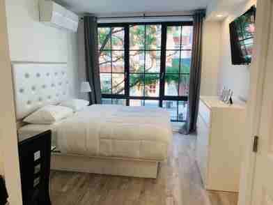 Fully furnished studio apartment Brand new construction building located in the heart of Midtown West on 53rd and 9th AveThe apartment has been recently renovated and decorated with new furniture. The building is fully wired with elevator, Laundry In Building, Pets Allowed, courtyard Access. Live in a peaceful, quiet building with a vibrant, bustling neighborhood just outside your door. Nearby, there is a quick and easy commute to any Manhattan destination of your choosing. From visiting NYCs hot-spots and shopping for the latest trends, to relaxing with a book at your favorite local cafe This apartment is the perfect space for you to explore and feel at home!THE APARTMENT -Floot to ceiling windows-Queen size bedroom-Stainless steel appliances kitchen-Marble spacious bathroom-Ample closet and storage space- Kitchen is fully equipped- Linen and sheets are provided- Towels are providedNEIGHBORHOODLocated in Midtown West, one of the most convenient neighborhoods in all of Manhattan. Enjoy the beautiful views of the city skyline from the rooftop deck and explore what Manhattan has to offer. Times Square, Columbus Circle, Central Park and the Theater District are all within a short walk. Visit the Intrepid Museum by the pier. The building is also located near every major subway (A, C, E, N, R, 1) and bus lines. BUILDING AMENITIESLaundry in BuildingCourtyardElevator30 Days MinimumBROKER FEE APPLIES