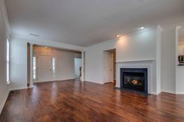 The main level features a comfortable great room with a gas fireplace and a bright bonus room ideal as a dedicated office, playroom, or hobby space. A functional kitchen opens to a dining area and a light-filled sunroom, which leads out to a large deck overlooking the backyard and open community space—a peaceful spot to unwind outdoors. The first-floor owner’s suite includes two walk-in closets and a private bath with a double vanity, separate shower, soaking tub, and water closet. A roomy laundry/mudroom with a washer and dryer is conveniently located nearby.