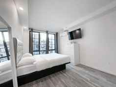 Short Term to 12 Months Lease Terms Available. 2 Bedroom, Gorgeous New Development. Located in Hell's Kitchen. It is an elevator building and has a laundry in the basement. There is also a stunning backyard space. The building is very well taken care of, everything immaculately cleaned & the management is extremely responsible, it treats the building as a hotel.