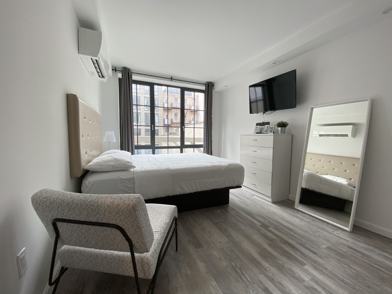 Fully furnished studio apartment The apartment has been recently renovated and decorated with new furniture. The building is fully wired with elevator, Laundry In Building, Pets Allowed, courtyard Access. Live in a peaceful, quiet building with a vibrant, bustling neighborhood just outside your door. Nearby, there is a quick and easy commute to any Manhattan destination of your choosing. From visiting NYCs hot-spots and shopping for the latest trends, to relaxing with a book at your favorite local cafe This apartment is the perfect space for you to explore and feel at home!THE APARTMENT -Floot to ceiling windows-Queen size bedroom-Stainless steel appliances kitchen-Marble spacious bathroom-Ample closet and storage space- Kitchen is fully equipped- Linen and sheets are provided- Towels are providedNEIGHBORHOODLocated in Midtown West, one of the most convenient neighborhoods in all of Manhattan. Enjoy the beautiful views of the city skyline from the rooftop deck and explore what Manhattan has to offer. Times Square, Columbus Circle, Central Park and the Theater District are all within a short walk. Visit the Intrepid Museum by the pier. The building is also located near every major subway (A, C, E, N, R, 1) and bus lines. BUILDING AMENITIESLaundry in BuildingCourtyardElevator30 Days Minimum