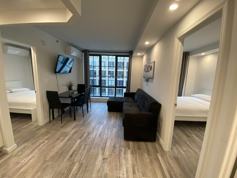 Summer 2025!!! Fully Furnished 2 BedroomsBrand new construction building located in the heart of Midtown West on 53rd and 11th AveThe apartment has been recently renovated and decorated with new furniture. The building is fully wired with elevator, Laundry In Building, Pets Allowed, courtyard Access. Live in a peaceful, quiet building with a vibrant, bustling neighborhood just outside your door. Nearby, there is a quick and easy commute to any Manhattan destination of your choosing. From visiting NYCs hot-spots and shopping for the latest trends, to relaxing with a book at your favorite local cafe This apartment is the perfect space for you to explore and feel at home!THE APARTMENT -Floot to ceiling windows-Queen size bedroom-Stainless steel appliances kitchen-Marble spacious bathroom-Ample closet and storage space- Kitchen is fully equipped- Linen and sheets are provided- Towels are providedNEIGHBORHOODLocated in Midtown West, one of the most convenient neighborhoods in all of Manhattan. Enjoy the beautiful views of the city skyline from the rooftop deck and explore what Manhattan has to offer. Times Square, Columbus Circle, Central Park and the Theater District are all within a short walk. Visit the Intrepid Museum by the pier. The building is also located near every major subway (A, C, E, N, R, 1) and bus lines. BUILDING AMENITIESLaundry in BuildingCourtyardElevator30 Days Minimum