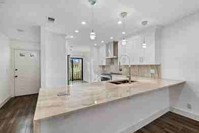 Immaculate and completely remodeled beach villa with 2 bedrooms 2 full baths and 1 car garage. Backing up to Carlin Park and walking distance to areas finest beaches, restaurants and shopping. If you appreciate quality then you will not be disappointed. Wood plank tile flooring throughout, chefs kitchen with quartzite waterfall counters, quality white wood cabinetry and GE Profile stainless steel appliances. Modern open floor plan with quality LED lighting. Hurricane impact windows and doors. Generous master suite and bath with double vanity and rain shower head. Back covered screened patio perfect for entertaining. Beach living at its finest. Available 5/5