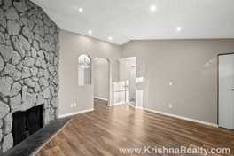 * Living room features large stone fireplace, custom design painted accent wall and a large window overlooking the front yard letting lots of natural light inside!