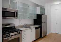 This flex 1br features modern finishes in a luxury building located in the heart of the Financial District. A charming bay window adds character to the open living area, which is enhanced by oak hardwood floors, high ceilings, and an expansive walk-in closet. The fully equipped kitchen offers generous cabinet space, natural stone countertops, and stainless steel appliances, including a microwave and dishwasher.