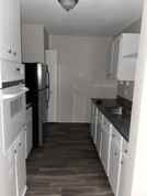 Galley kitchen, built in oven, stove top, plenty of counter top and cupboards. Formal dining room, large living room with balcony to enjoy the summer.