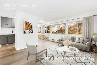 1331 Terry Ave #105, Seattle, WA is a 1 bedroom, 1 bathroom apartment for rent. It is located in the First Hill neighborhood of Seattle. It has apartment amenities including hardwood floor, and in-unit laundry. Cats and dogs are allowed, making it a pet-friendly apartment.
