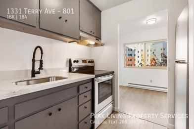 1331 Terry Ave #801, Seattle, WA is a 1 bedroom, 1 bathroom apartment for rent. It is located in the First Hill neighborhood of Seattle. It has apartment amenities including hardwood floor, and in-unit laundry. Cats and dogs are allowed, making it a pet-friendly apartment.