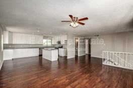 Fully Remodeled 5 bedroom, 2.5 bath home with sparkling refinished pool in the popular Tempe Gardens community. Large front yard with low maintenance grass landscaping. Front doors open up to foyer with gorgeous, dark faux wood flooring and decorative lighting and opens up to popular tri-level floor plan. Upstairs you will find a huge island kitchen with gorgeous white cabinets, new stainless steel appliances including a built in microwave and plenty of counter and cabinet space. Kitchen overlooks bright, spacious living room with more beautiful faux wood floors and a ceiling fan. Also upstairs is a 1/2 bath/powder room and bedroom with ceiling fan and neutral paint/carpet. Good sized master bedroom is also located upstairs and has His & Hers closets with organizers, ceiling fan, neutral paint/carpet and full bathroom with white cabinets and shower/tub. 3 more bedrooms are located downstairs along with large family/bonus room, another full bathroom, Laundry room with washer and dryer and oversized garage. Huge backyard with block fence, covered patio, low maintenance desert landscaping and sparkling diving pool that has recently been refinished with all new plaster, tile and equipment. Close to 101, 60 and 10 freeways and tons of shopping, dining and entertainment! Pool service included in rent!