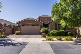 Move in ready!! Back landscape included! Well maintained 3 bedroom + den, 2 bath home in Queen Creek Station community. This home features many beautiful upgrades: kitchen has granite countertops, tile backsplash, stainless steel appliances including washer and dryer, walk in pantry, and large kitchen island. Custom paint, faux wood blinds, ceiling fans, tile in main living areas, carpet in all bedrooms. Primary ensuite has separate tub and shower, double sinks with granite counter top, plenty of vanity cabinets and drawers. Front and back yards landscaping is lush and low maintenance. Covered back patio and oversized backyard are great for entertaining friends and family. Close to Queen Creek Marketplace, soon to be new Costco, schools, major freeways, Schnepf Farms, and the new Frontier Park