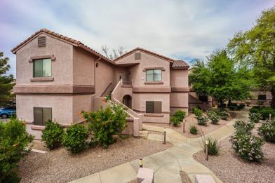 Very nice 2BR, 2BA condo + DEN with a GARAGE in excellent location! You'll love the open floor plan w/ spacious great room, open kitchen, granite kitchen counters, split bedrooms, and Arcadia doors to private balconies from both the master bedroom and the living room. Excellent North Scottsdale location within walking distance of great shopping and restaurants and easy access to highway 101. This unit also includes a 1 car garage! You'll love it! (Please note: HOA will only allow pets 15 lbs or less.) Available NOW!!!