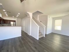Beautiful townhome in the Serenity Village at Anthem gated community. The home is steps from the sparkling heated community pool, clubhouse, and workout facility. This private end unit location is beautifully landscaped and close to shopping, dining, and entertainment and is just a short walk to Anthem Community Park. The home is light and bright, with professionally cleaned carpets, and wood laminate flooring in the living, dining, and kitchen areas. The kitchen has stainless steel Frigidaire appliances and a reverse osmosis drinking water system. One bedroom/one full bath are downstairs. The large master bedroom suite has a well-appointed bathroom, dual sinks, spacious shower, walk-in closet, & custom storage. A 2nd bedroom, additional bathroom, and spacious laundry are also upstairs. In addition, there is a two-car attached garage, a small enclosed front patio, and a whole-house water softener.