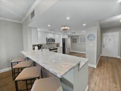 The condo is located on the 3rd Floor with breathtaking views of the Gulf Coast Ocean! Experience a 2 Bedroom, 3 Bath Combo home with all the open floor plan that you and your family could need. The beautifully designed, modern kitchen, is equipped with all the appliances you will need to make your trip a success, including barstool seating for four, all new stainless steel appliance's, and induction burner top oven.