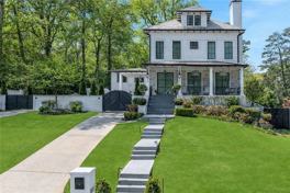Gorgeous Morningside home offering four fully finished levels of living space, complete with a fully heated and cooled detached garage, automatic entry and exit gates, and a spacious motor court accommodating multiple vehicles. Perched above the street, this property provides exceptional privacy in an unbeatable location near shopping, dining, parks, hiking trails, and the Morningside Nature Preserve. A large covered front porch welcomes you with ample space for outdoor seating and a classic porch swing. Inside, an elegant foyer showcases detailed moldings, soaring ceilings, pristine hardwood floors, and a seamless open-concept layout. The formal living room features a coffered ceiling, fireplace, and dual French doors, flowing effortlessly into a banquet-sized dining room, perfect for entertaining. A butler's pantry leads to the stunning white chef's kitchen, highlighted by an oversized stone island with seating and a farmhouse sink, along with top-of-the-line stainless steel appliances including Dacor, Sub-Zero, and Viking. Additional features include a built-in desk, large pantry, and open views into the inviting family room with a fireplace, custom built-ins, and another set of French doors leading outdoors. A bright breakfast room with wall-to-wall windows overlooks the private backyard. Just off the family room, a covered outdoor living space with privacy curtains provides the perfect setting for year-round enjoyment. The oversized primary suite is a true retreat, featuring its own fireplace, spacious sitting room, morning bar with sink and beverage refrigerator, private outdoor space, and a spa-inspired bath with a slipper tub, marble shower, dual vanities, and a custom walk-in closet. Three additional bedrooms and two full baths complete the upper level. The terrace level offers incredible versatility with a media room, multiple living areas, kitchenette, bedroom with private entry, and a full bath. The walk-out backyard is level, fenced, and designed for low maintenance with turf grass, accent lighting, and a charming playhouse with electricity-perfect for both relaxation and play. Enjoy easy, low-maintenance luxury living in the heart of Morningside, located in the highly sought-after and award-winning Morningside Elementary School district. Property is available furnished or unfurnished if desired.