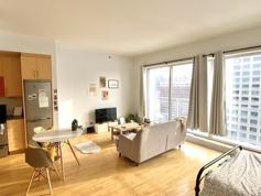 La vue panoramique recherchée! Condo moderne avec fenestration abondante donnant une vue imprenable sur le centre-ville, pont Jacques-Cartier et fleuve. STUDIO 600 p.c avec hauteur de plafond de 10' situé au 14 e étage. Hauteur, luminosité, grande pièces à aire ouverte s'offrent à vous. A proximité de tous besoins. Une visite suffira!