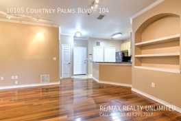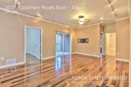 10105 Courtney Palms Blvd #104 is a 2 bedroom, 2 bathrooms apartment for rent. It is located in Tampa. It has apartment amenities including central heat, fitness center, dishwasher, air conditioning, hardwood floor, in-unit laundry, high ceilings, walk-in closets, and microwave.