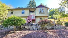 Lovely, contemporary, 4 bedroom, 3 bathroom home sits on a private lot just minutes to downtown Bremerton, PSNS, and Bremerton Ferry Terminal. Custom features throughout include rustic red oak floors, slate showers, white doors, and rosewood trim and cabinets. Open concept living upstairs with spacious kitchen, marble counters, and gas range. Large entertainment area or second living space on lower level with custom closet. A fully fenced backyard offers a private and tranquil setting with a covered deck. A dog may be possible with approved third-party pet screening, an additional $500 security deposit, and $35 monthly pet rent. Yard care is included in the rent.