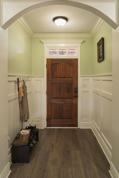As you step inside, you’re welcomed into a charming foyer entry that leads to a beautifully designed living room. This inviting space is highlighted by rich hardwood flooring, a cozy fireplace, elegant tray ceilings, and a ceiling fan, creating a warm and comfortable atmosphere. The open layout seamlessly connects to the kitchen, making it perfect for entertaining and everyday living.