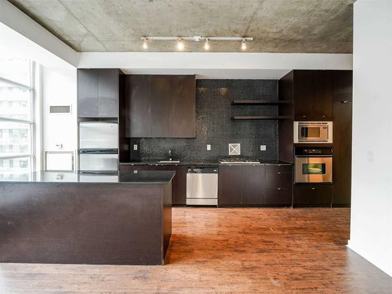 Rarely Offered 1+Den Loft In The Heart Of King West! This Loft Offers 806 Sqft Of Living Space, Soaring 10 Ft Ceilings. Open Concept One Bedroom With Separate Large Den, Large Industrial Windows. Kitchen Has Floor To Ceiling Cabinetry And A Kitchen Island, Stainless Steel Appl. & Gas Stovetop. Overlooking Quiet And Private Courtyard But Steps Away From All What King Street Has To Offer! Ttc, Shopping, Parks, Restaurants, Nightlife. City Living At Its Best!
