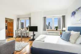 Sunny and cheerful, this high-floor, airy and quiet sanctuary offers the ultimate New York living experience. Filled with natural light and unobstructed views south to The Freedom Tower, west to New Jersey and east over Brooklyn and Queens, this apartment offers a beautiful interior, smart layout and full amenities, all within a truly luxurious and friendly white-glove setting. The rent is inclusive of utilities (electric, gas and cable) and is offered furnished or unfurnished. This lovely studio offers full views of The Empire State building, a wide entrance gallery and 9' ceilings, a generously sized, renovated luxury bath with deep soaking tub and heated towel racks. The apartment also offers high-end appliances including an in-unit Bosch Washer-Dryer, cherry wood cabinets, 5 1/8" plank hardwood floors, Miele gas range, Meile dishwasher and refrigerator and granite countertops. There is also complimentary bike storage available in the building. Built in 2003 and designed by the noted architect Michael Graves, this full-service, white-glove condominium includes a 24-hour concierge and doorman and a gracious lobby entrance. The building was styled with large galleries in both the private and common spaces and provides the convenience of a newly renovated health and wellness center including a full gym with studio, indoor pool, steam room, sauna, massage treatment rooms and wrap-around sun terrace as well as a business and conference center, resident's lounge, private cinema, wine cellar, outdoor courtyard immediately to the right of the building entrance, and live-in superintendent and resident manager. Sorry, no dogs. Conveniently located near fine dining and shopping and is wonderfully close to Bryant Park, the main branch of The New York Public Library, Grand Central Station, airport access, 16 subway lines and the well-serviced Fifth Avenue and Madison Avenue bus lines, 425 Fifth Avenue offers the ultimate central location.