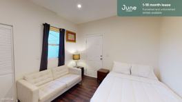 You won’t want to miss this magnificent 10-bedroom, 10.5-bathroom shared apartment in Koreatown. At an impressive 3041-square-feet, this three-story Craftsman house is situated on a small fenced-in lot with a rear patio. Features include a balcony overlooking a small fenced-in backyard, high-speed WiFi, and multiple flat-screen TVs, one of which is wall-mounted in the first-floor living space. As a shared apartment in the June Homes network, this Koreatown home includes 24/7 support.