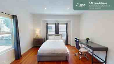 You won’t want to miss this magnificent 10-bedroom, 10.5-bathroom shared apartment in Koreatown. At an impressive 3041-square-feet, this three-story Craftsman house is situated on a small fenced-in lot with a rear patio. Features include a balcony overlooking a small fenced-in backyard, high-speed WiFi, and multiple flat-screen TVs, one of which is wall-mounted in the first-floor living space. As a shared apartment in the June Homes network, this Koreatown home includes 24/7 support.