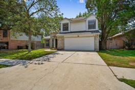 Charming 3-bedroom, 2.5-bathroom home in the desirable Woodland Oaks community of Schertz, TX. This beautiful home offers a spacious and inviting layout, perfect for both relaxation and entertaining. Upon entry, you are welcomed into the bright and airy living area, featuring vaulted ceilings and a cozy fireplace, creating a warm and welcoming atmosphere. Large windows fill the space with natural light, enhancing the home's open feel. The well-appointed eat-in kitchen is conveniently located just off the breakfast area and boasts ample cabinetry and matching stainless steel appliances, making meal prep a breeze. The generously sized primary suite is situated on the first floor, offering a peaceful retreat with a bay window. The en-suite bathroom features double vanities, a large garden tub, and a separate shower-perfect for unwinding after a long day. Upstairs, the spacious secondary bedrooms are each equipped with ceiling fans, providing comfort year-round. An additional full bathroom serves these rooms, making this home ideal for everyone. Step outside into the private backyard, which backs up to a serene greenbelt. Enjoy the outdoors on the extended wood deck, perfect for gatherings, or let your pets roam in the separate dog run. Mature trees add to the beauty and tranquility of the space. With easy access to major roads like Interstate 35 and Loop 1604, and just a short drive to Randolph AFB, this home is ideally located for convenience and comfort. Schedule a showing today-this one won't last long!