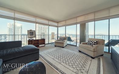 Summary: Rent:$6,200 Bed/Bath:2bd/2ba Type:Condo-Unfurnished Terms: 1 Year Lease Terms Available: Early April _____________________________________________________________ Corner Condo with Wrap-around Patio & Panoramic Views in Russian Hill The Eichler Summitis a high-rise condominium tower developed by Joseph Eichler, located at the top of the upscale Russian Hill at 999 Green Street. The tower was designed by Neill Smith and Associates and has 32 floors of residential condominiums. The tower, completed in 1965, has some of San Franciscos most expensive and scenic condos. This residential tower is featured in Sean Wilseys bookOh the Glory of It Allas well as "Significant Others" and "Sure of You" by Armistead Maupin. Residents include former Secretary of State George Shultz and his wife, San Franciscos chief of protocol, Charlotte Smith Mailliard Swig Shultz. The couple hosted British Prime Minister Tony Blair at their penthouse home when Blair visited California in July 2006. Features: Panoramic views from Golden Gate Bridge to the Bay Bridge including Alcatraz, Coit Tower and the North Bay 19th floor corner unit with 2 walls of windows with northern and western exposures Open living/dining area perfect for entertaining Kitchen with granite counters, electric oven/range, refrigerator, dishwasher Master bedroom with en-suite bathroom and abundant closet space Updated bathrooms with beautiful marble tile floors, one with shower-over-tub and one with stall shower Wrap-around private patio accessible from living room and both bedrooms Carpet throughout living areas and bedrooms (not reflected in photos) Washer/dryer in building, just down the hall from unit Water, garbage and heat included Storage space included 1-car parking available for $200/mo. PrestigiousEichlerhigh-rise building with 24-hour doorman Prime Russian Hill location Sorry, no smoking Small pets considered on an individual basis