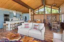 A stylish, mid-mountain retreat with sweeping mountain views, Perfect View sits just 5 minutes from skiing at Snowmass and 20 minutes from downtown Aspen. Defined by walls of windows, stacked-stone fireplaces, and vaulted tongue-and-groove ceilings, this vintage home welcomes guests to an open-concept living area with a classic lodge ambience. Settle into one of two full-length sofas by the wood-burning fireplace, find inspiration at an antique drafting desk, or step onto the expansive upper-level deck to enjoy views that stretch from Independence Pass to Sam's Knob. Steps from the living area, an 8-seat formal dining table offers space for sit-down dinners. Six stools at the breakfast bar allow for larger groups or a separate ''kids' table.''On blue-bird days, fire up the gas grill for dinner al fresco at the 8-seat patio table. Ideal for families or larger groups, this home also features a lower-level den with a large-screen TV, wood-burning fireplace, pool table and twin-size daybed. Give kids their own space to play, or use this space for apre-ski at home. Glass doors open this level to a covered patio and hot tub with mountain views. Guests mixing work with leisure will also appreciate the den's office area, which overlooks the mountains through picture windows. Down the hall is a private guest suite. The home's four bedrooms, evenly spaced for privacy, accommodate up to 8 guests with flexible bedding configurations. A gourmet kitchen with stainless steel appliances and a private washer and dryer add all the comforts of home. From its convenient location near Snowmass Village, Perfect View offers access to all four of Aspen's ski areas in under 25 minutes. An attached 1-car garage makes it easy to explore the surrounding area, including hiking and biking trails, golf courses, playgrounds and live events. The restaurants, shops, galleries and entertainment downtown are 20 minutes away. Whether you're planning a ski vacation or summer escape, Perfect View is ideally situated to experience the year-round recreation and culture of Aspen. On blue-bird days, fire up the gas grill for dinner al fresco at the 8-seat patio table. Ideal for families or larger groups, this home also features a lower-level den with a large-screen TV, wood-burning fireplace, pool table and twin-size daybed. Give kids their own space to play, or use this space for apre-ski at home. Glass doors open this level to a covered patio and hot tub with mountain views. Guests mixing work with leisure will also appreciate the den's office area, which overlooks the mountains through picture windows. Down the hall is a private guest suite. The home's four bedrooms, evenly spaced for privacy, accommodate up to 8 guests with flexible bedding configurations. A gourmet kitchen with stainless steel appliances and a private washer and dryer add all the comforts of home. From its convenient location near Snowmass Village, Perfect View offers access to all four of Aspen's ski areas in under 25 minutes. An attached 1-car garage makes it easy to explore the surrounding area, including hiking and biking trails, golf courses, playgrounds and live events. The restaurants, shops, galleries and entertainment downtown are 20 minutes away. Whether you're planning a ski vacation or summer escape, Perfect View is ideally situated to experience the year-round recreation and culture of Aspen.