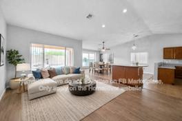 Discover comfort and convenience in this beautifully designed 1,913 sq ft, 4-bedroom home, featuring a private pebble-tec pool with pool service included! The open, split floor plan blends style and functionality, making everyday living and entertaining a breeze. The spacious primary suite offers a full bath, ample closet space, neutral finishes, and double doors that open directly to your own poolside retreat. A separate third-car garage provides extra space for storage, tools, or recreational gear. Do not miss this opportunity, homes like this go quickly. This property has been virtually staged for marketing purposes, and the furniture is not included.