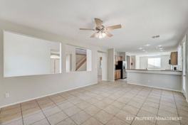 Spacious two-story home in the desirable Silverado Ranch area featuring four bedrooms, including a downstairs bedroom and full bath. The floorplan offers great flexibility with a loft upstairs and a downstairs den with built-in bookcase. The kitchen boasts a large granite breakfast bar, stainless steel appliances, and plenty of cabinet space. Enjoy a three-car garage and a covered rear patio overlooking grass front and back, with yard service included. Fresh two-tone paint throughout adds to the clean, inviting feel.