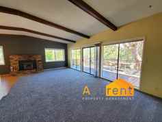 This classic ranch-style home lies in a beautiful Jacksonville setting with wonderful views all year round. The open living space boasts vaulted ceilings and ample room. Down the hall, you will find the bedrooms with an updated master bedroom which was remodeled to also provide easy wheelchair access, and a private updated bathroom. This home offers 3 bedrooms plus a spacious office with built-ins and expansive decking for enjoying the outdoors or entertaining. The property also features a 2 car garage, a shop with 220 connection, a fenced garden area, and a wood stove insert in the fireplace. Too much to list on this fantastic rental, you do not want to miss this one.