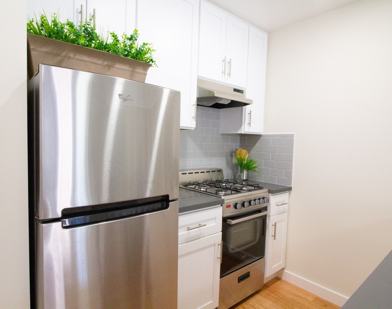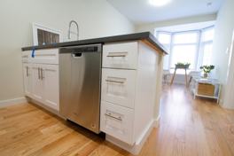 -Newly remodeled kitchen with stainless-steel appliances: dishwasher, fridge, gas range