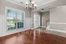 Hardwood flooring graces the foyer and formal dining room, lending warmth and enduring style